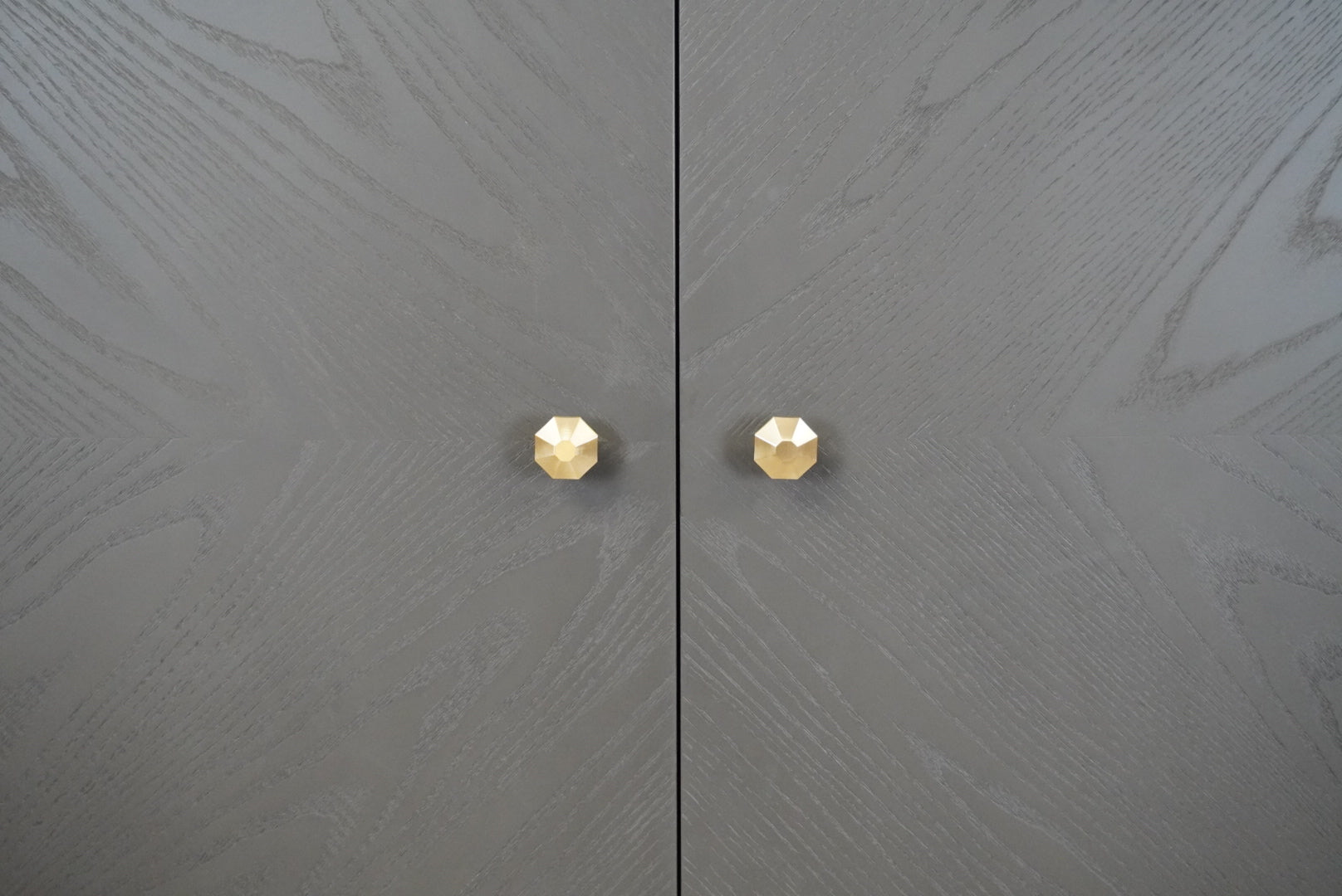 Diletta 2 Drawer Bedside Table in Ebony – a luxurious addition to your bedroom from our exclusive Luxury Bedroom Collection. Inspired by Art Deco design, this bedside table exudes elegance and sophistication. Crafted with ash wood veneers hand-laid in a V match pattern, it showcases meticulous attention to detail. The ebony-coloured wood and brushed gold metal hardware and inlay add a touch of opulence to your bedroom decor.