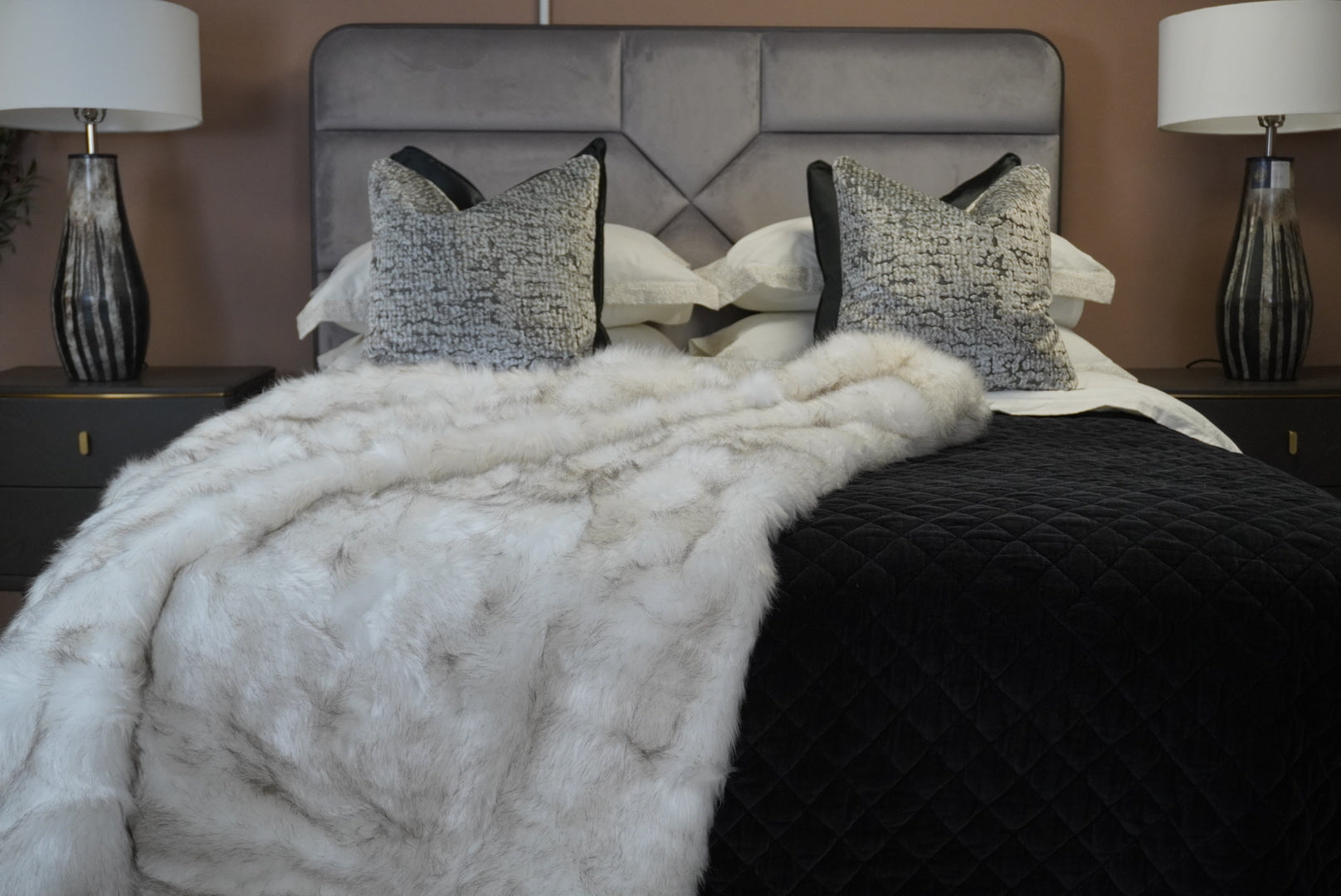 Diletta 5ft Bed in Ebony – a luxurious centrepiece for your bedroom. Inspired by Art Deco design, this bed exudes elegance and sophistication. Adorned with brushed gold metal hardware and inlay, it adds a touch of opulence to your space. Crafted with ebony-coloured wood and upholstered in ecru colour velvet, it offers both style and comfort.